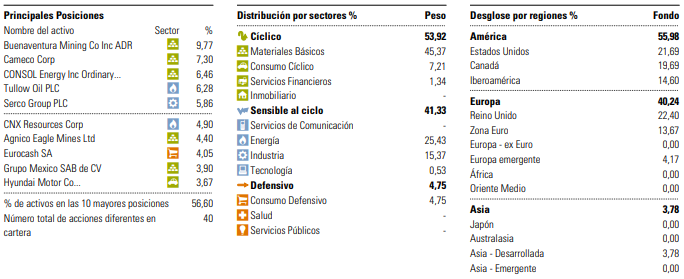 Actualmente invierte un 80% Cartera Internacional y 20% Cartera Ibérica (estos pesos pueden variar a discreción de los gestores en función de las oportunidades de inversión).