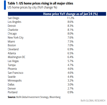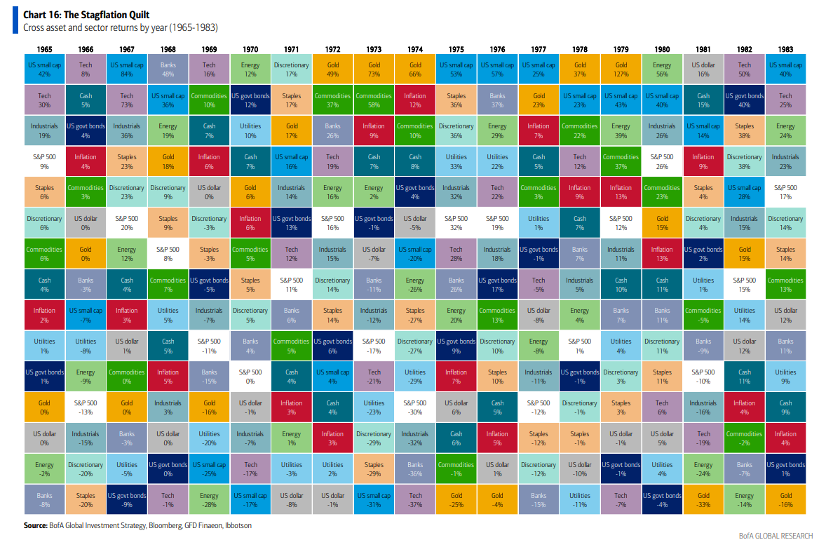 … inflación en Wall Street y Main Street en 2024… es mucho más probable que no haya aterrizaje a que haya un aterrizaje suave; un “buen” no aterrizaje impulsado por la aceleración del crecimiento (por ejemplo, PMIs globales) es un riesgo positivo, especialmente para los cíclicos (así es como está posicionado el mercado); pero un “mal” no aterrizaje impulsado por la aceleración de la inflación representa un riesgo más negativo, volatilidad positiva y activos reales (por ejemplo, efectivo, oro y materias primas – ver el “Stagflation Quilt” Gráfico 16);