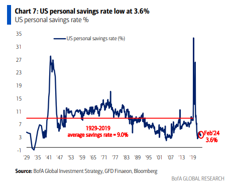 La gente común dice “¿por qué ahorrar?”… La tasa de ahorro personal en EE. UU. es baja, 3.6% (Gráfico 7),