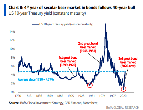 el consumidor continúa gastando, el crecimiento del PIB nominal ha aumentado un impresionante 42% desde COVID… los bonos gubernamentales apenas están cuatro años en un mercado bajista secular (después de un toro secular de 40 años – Gráfico 8).