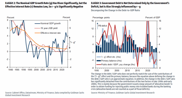 La magnitud de la deuda pública japonesa implica que la ratio deuda/PIB aumentaría más rápidamente que en otras economías si los tipos de interés suben más rápido que el crecimiento del PIB nominal (por ejemplo, debido a una subida de la inflación o una prima de riesgo fiscal).