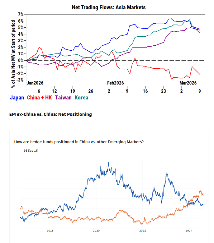 Los flujos en la región seguían siendo de perfil “risk-on”, liderados por China y Japón, aunque dominados por ventas en corto.