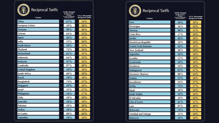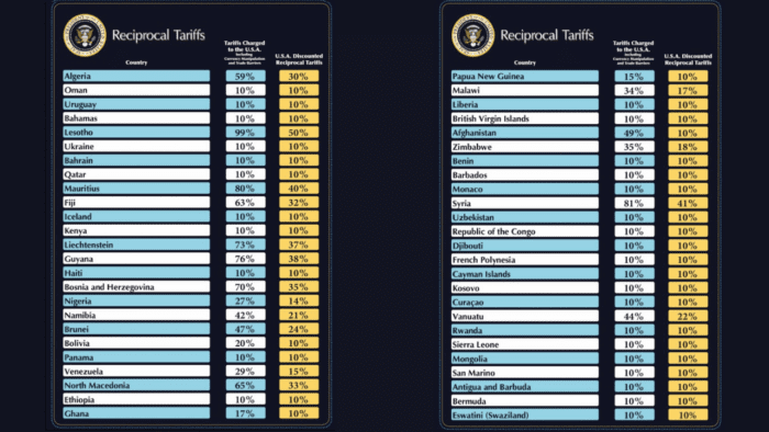 Pero se aplicarán tasas más altas a ~60 naciones «peor infractoras»… Estas son las tablas: