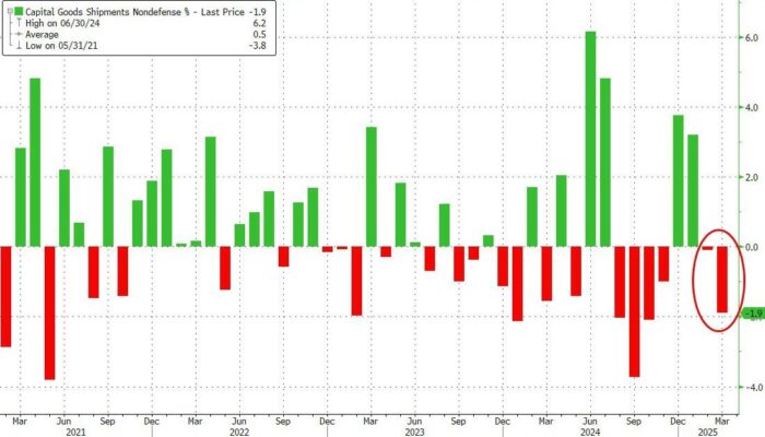 Sin embargo, los envíos de bienes de capital no relacionados con la defensa, incluidas las aeronaves, que alimentan directamente la porción de inversión en equipos del informe del producto interno bruto, cayeron un 1,9%, el mayor nivel desde octubre.