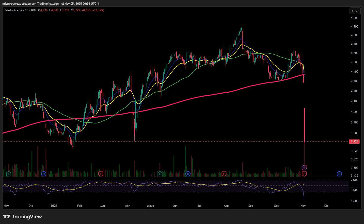 Sin embargo, la reacción del mercado fue negativa: las acciones de Telefónica se desplomaron un 13% al cierre, su mayor caída diaria desde la pandemia de COVID-19, mientras que el índice español de referencia IBEX 35 permaneció prácticamente plano.