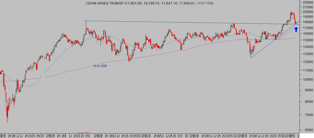 El Dow Jones de Transportes ha corregido bastante en el último mes pero ha aguantado bastante bien, hasta la fecha, las zonas de control que expusimos en post reciente y desde las que considero debería repuntar próximamente.