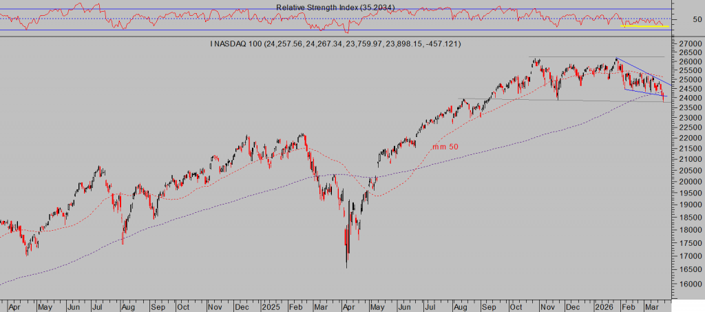 El viernes se los mercados de renta variable volvieron a topares con la gran inestabilidad e incertidumbre en Oriente Medio y subidas de precios de la energía que provocaron una nueva oleada de ventas de acciones que presionaron a los índices a la baja con firmeza, el Nasdaq se dejó un -2.01%, el SP500 un -1.51% y el Dow Jones -0.96%.