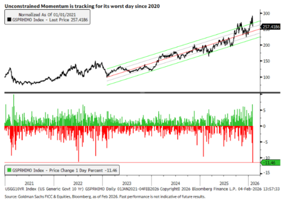 DRAWDOWN de Momentum con volúmenes explosivos (S&P E-Mini +43% de volumen rastreado). El factor Momentum cayó -10%, marcando la mayor caída diaria en años (superando el selloff de Deepseek del pasado enero). Las tensiones geopolíticas volvieron a agravar la presión (por ahora, las conversaciones EE. UU.–Irán vuelven a estar ON el viernes).