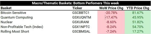 Los sectores de alto crecimiento finalmente han cedido. El sector tecnológico no rentable ha caído entre un 15 % y un 20 % en lo que va del mes, los sectores especulativos (drones, tecnología cuántica y sector espacial) han bajado entre un 25 % y un 30 %, y las criptomonedas continúan su propio descenso. El índice GSPUMENP (MegaCap Tech vs Non-Profitable Tech) registró su mejor semana desde febrero, lo que nos recuerda que la esperanza es menor que la realidad cuando las posiciones se ajustan.