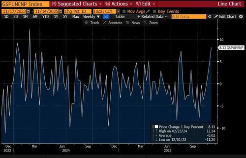 El índice MegaCap Tech vs Non Profitable Tech (GSPUMENP) tuvo su mejor semana desde febrero de 2024.