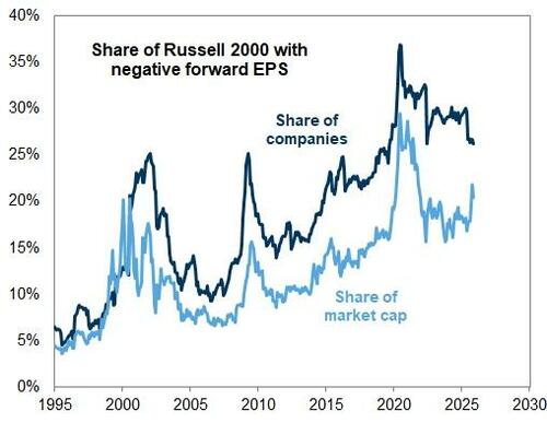 Porcentaje de empresas no rentables en el Russell 2000