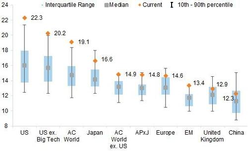 Fuente: I/B/E/S, Toyo Keizai, STOXX, MSCI, Goldman Sachs Global Investment Research