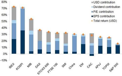 La mayoría de los principales mercados de valores superaron a los EE. UU. en 2025 en términos locales y en dólares estadounidenses.