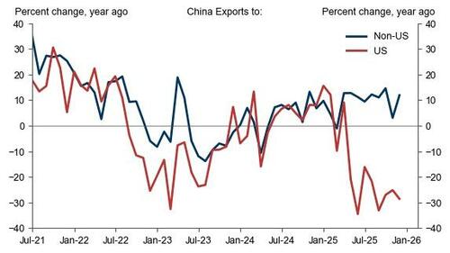 Las exportaciones de China a Estados Unidos continuaron disminuyendo, mientras que las exportaciones a otros países aumentaron aún más.