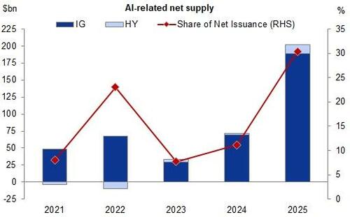 Más de 200 mil millones de dólares de oferta neta en 2025 provienen de emisores relacionados con la IA