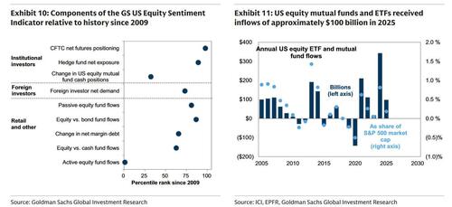 Hay un lado positivo: es alentador que algunas características comunes de los mercados de valores sobreextendido del pasado estén ausentes en el mercado actual, según Goldman, que continúa señalando que la actividad comercial especulativa aumentó drásticamente en 2025, pero se mantiene muy por debajo de los máximos de 2000 o 2021. Mientras tanto, el interés en corto en todo el mercado es alto.