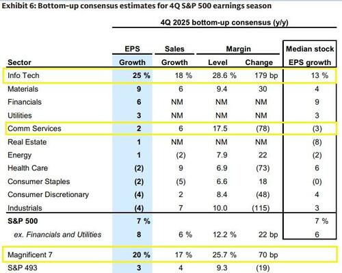 Dicho todo esto, Callahan concluye que la buena noticia es que solo hemos pasado una semana, las perspectivas generales siguen siendo favorables (datos de empleo, tasas, gasto en tecnología, impulso de la IA) y las ganancias están a la vuelta de la esquina (se espera nuevamente que el crecimiento de EPS sea liderado por Info Tech y Mag 7).