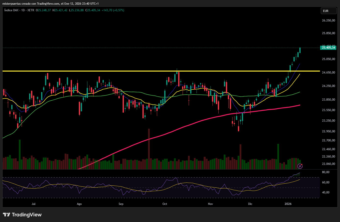 El DAX alemán sumó un 0,6% y cerró también en máximos históricos, encadenando diez sesiones consecutivas al alza, su racha ganadora más larga desde agosto de 2024. La mayoría del resto de bolsas regionales cerraron prácticamente planas.
