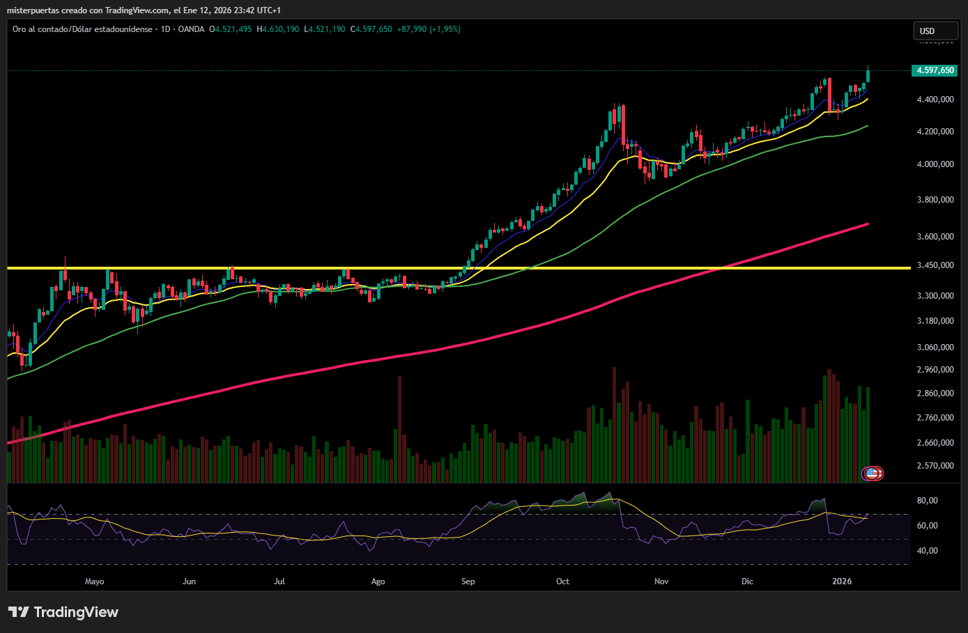 Apoyado por la debilidad del dólar, el oro superó los 4.600 dólares.