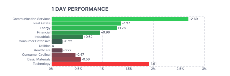Aunque el S&P 500 cotizó a la baja (y las grandes tecnológicas cayeron con más fuerza, salvo META y AAPL), hubo más valores del índice subiendo que bajando, lo que pone de manifiesto una mayor amplitud del mercado.