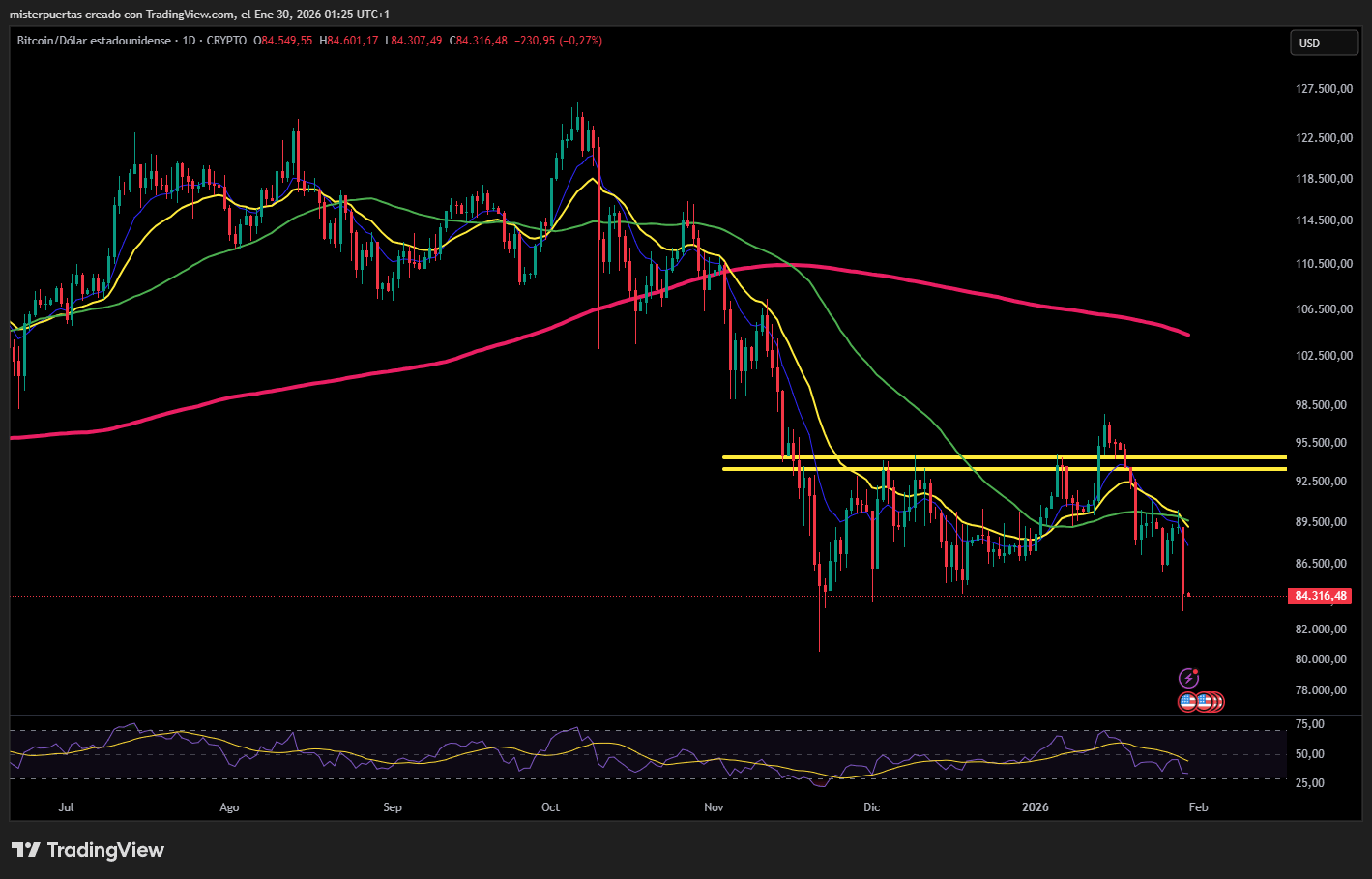 Finalmente, aunque la mayoría de activos de riesgo rebotaron, hubo una excepción clara: Bitcoin. Registró su mayor caída desde el 3 de marzo de 2025, marcando mínimos no vistos desde noviembre de 2025.