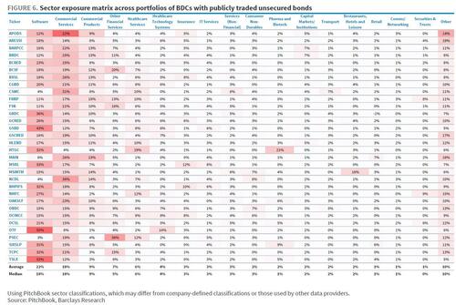 “El software es el sector con mayor exposición para las BDC, con alrededor del 20% de sus carteras, lo que hace que la industria sea particularmente sensible a la reciente caída de las valoraciones de capital y crédito del software ”  , escribieron analistas de Barclays, incluido Peter Troisi,  en una nota disponible para profesionales . La exposición total fue de aproximadamente 100 000 millones de dólares en el tercer trimestre del año pasado, según los analistas, citando datos de PitchBook.