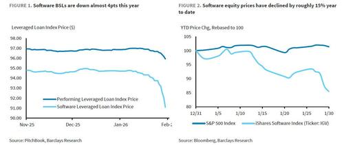 A diferencia de noviembre pasado, cuando el crédito privado se desplomó debido al temor generalizado a la exposición a las hipotecas subprime, la ola de ventas de hoy refleja una creciente ansiedad por la exposición al software , un sector que está siendo aplastado por la inteligencia artificial. El temor a una disrupción ha sacudido el crédito a nivel mundial, lo que provocó que los préstamos de software en el mercado, ampliamente sindicado, se depreciaran alrededor de 4 puntos la semana pasada. Un índice que sigue las acciones de software se desplomó un 15% en enero, su mayor caída mensual desde octubre de 2008.