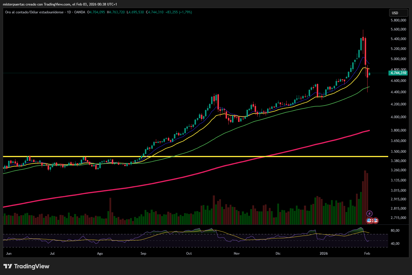 El dólar extendió las ganancias del viernes, borrando gran parte de la caída posterior a Japón. A pesar de un sólido rebote desde el soporte de 4.400 dólares, el oro cayó alrededor de un 5% desde el cierre del viernes.