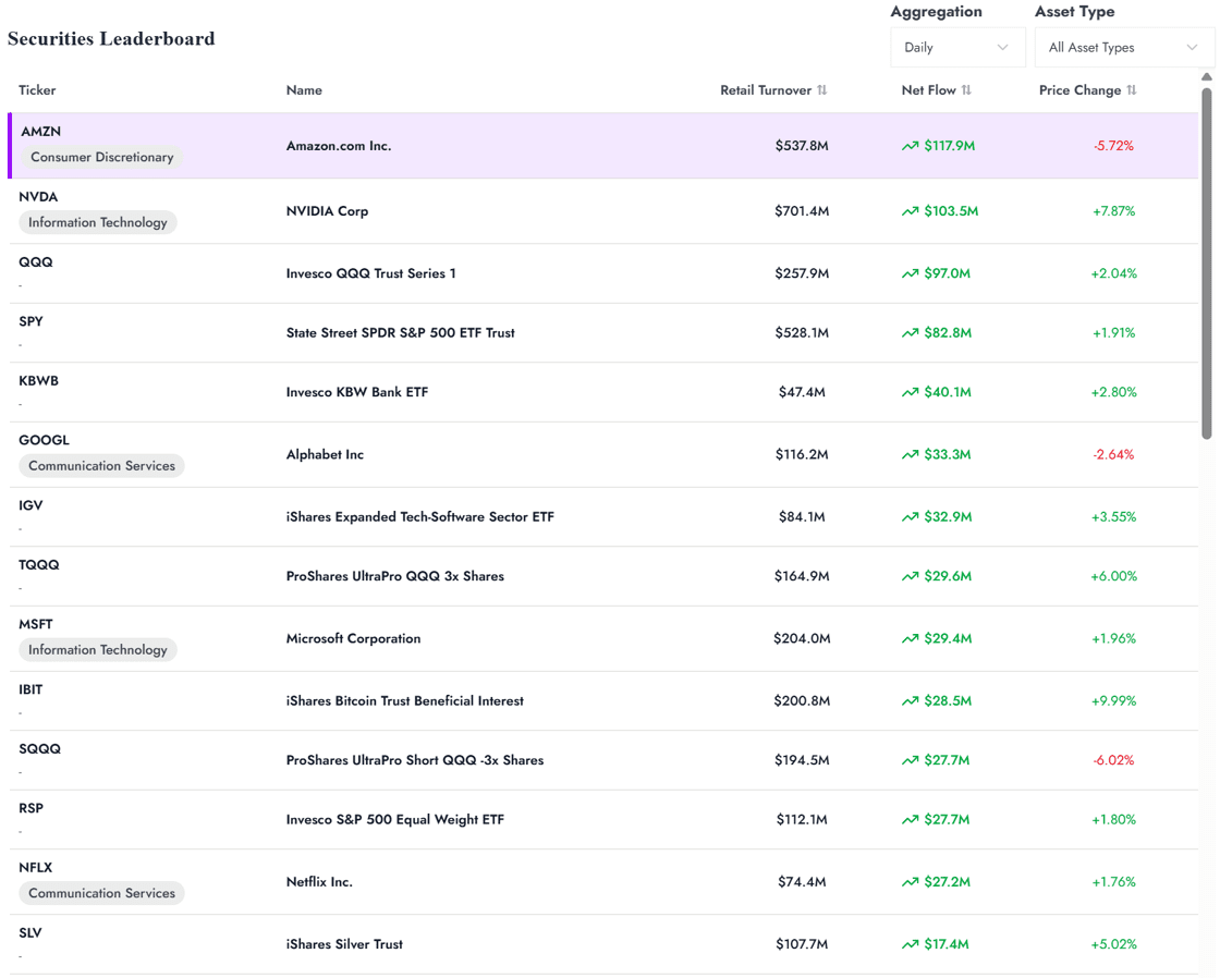 El viernes pasado, AMZN registró su mayor día de compras minoristas netas desde agosto de 2024.