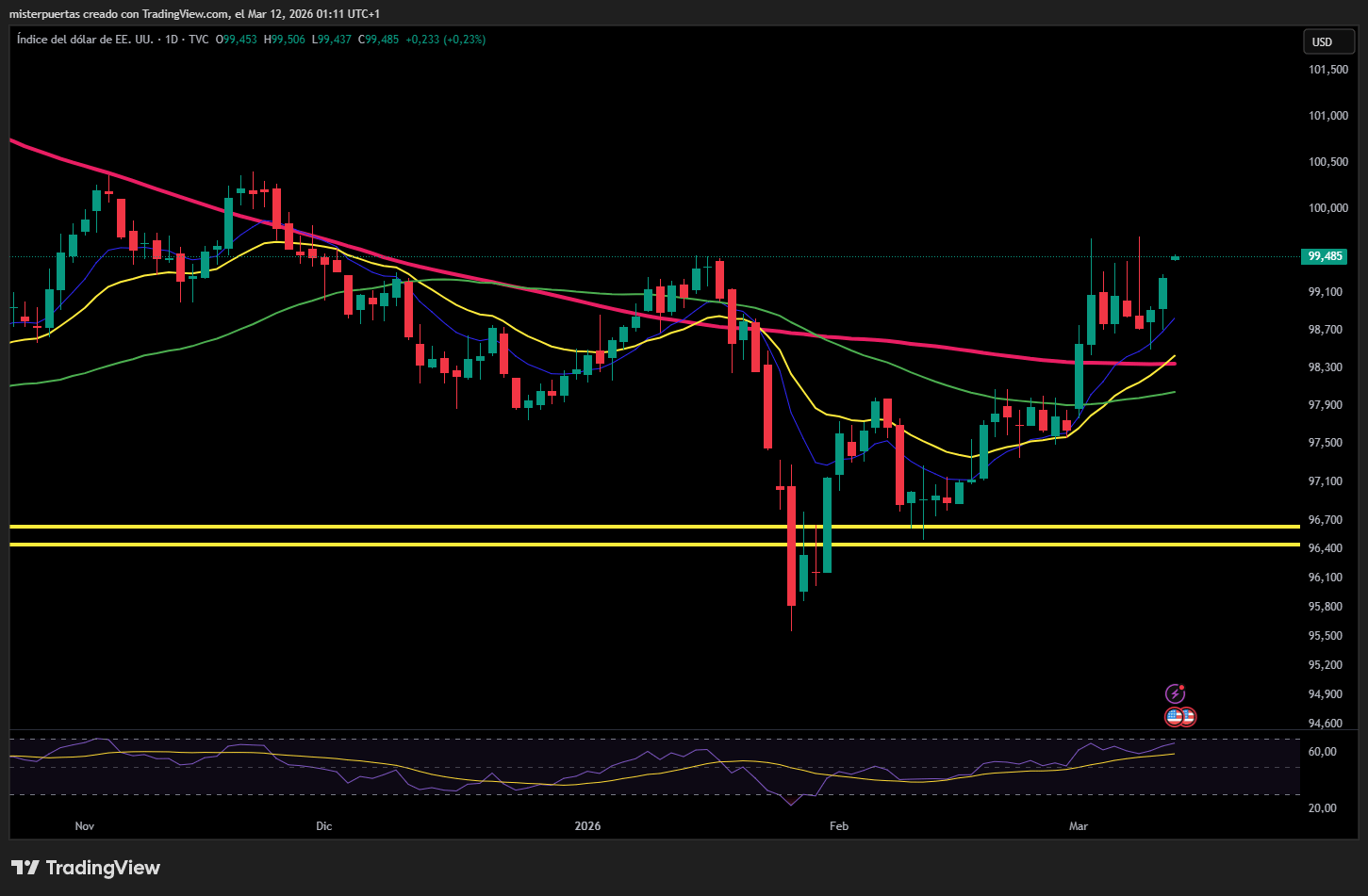 El oro volvió a caer por debajo de los 5.100 dólares. Bitcoin continúa moviéndose dentro de un rango estrecho alrededor del nivel de 70.000 dólares. Un día más, todo giró en torno a los precios del petróleo y a esa correlación negativa con las acciones. El Brent cerró casi en 100 dólares, su mayor cierre desde 2022.