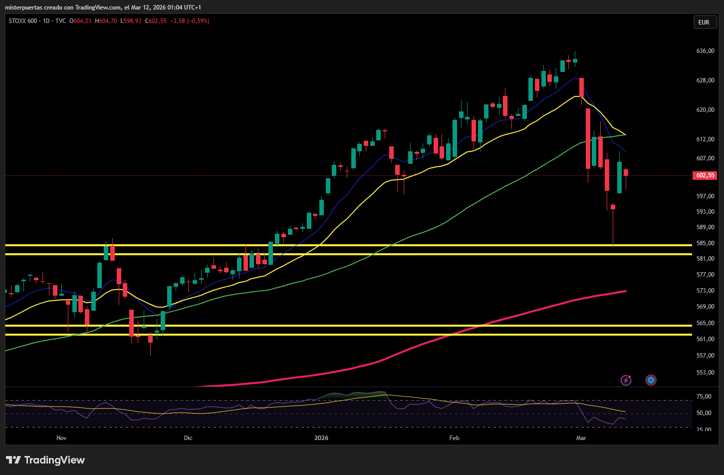 El STOXX 600 acumula ya una caída cercana al 5 % desde su máximo histórico de finales de febrero.