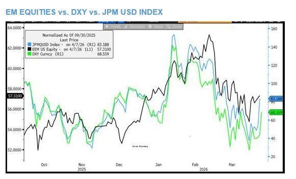 La correlación típica del conflicto se mantiene: acciones y bonos al alza, y petróleo a la baja. McElligott señala que Trump se vio obligado a “arrodillarse” ante Irán, algo que encaja al observar esos diez puntos de un “plan base”.