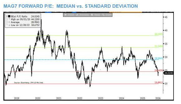 • En cuanto a sectores, estilos y factores, comencemos con Tecnología y Ciclos. Mag 7 y Semis parecían estar a punto de dispararse. Dentro de los Ciclos, las inversiones en Consumo representan el mayor potencial alcista a corto plazo, especialmente las de bienes discrecionales como las constructoras de viviendas y los minoristas.