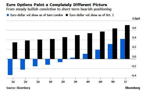 Luego está el euro. Juntos, la moneda común y el yen representan aproximadamente la mitad de los índices del dólar, y ambos apuntan ahora en la misma dirección: apoyo al dólar. El impulso alcista del euro se resquebraja a medida que aumenta el riesgo político francés. Los datos del DTCC del lunes mostraron la mayor inclinación hacia la exposición bajista en un mes, con reversiones de riesgo negativas hasta el plazo de dos meses, y una asimetría a un año por debajo de los 50 puntos básicos. La convicción se desvanece, mientras que las mesas de opciones observan constantes desmantelamientos de las estructuras superiores, a medida que el posicionamiento alcista en el euro se erosiona por cuarta semana consecutiva.