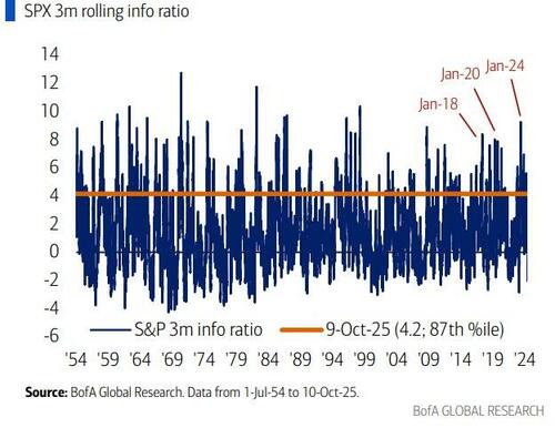 Esta fuerte ola de ventas también se produce después de un período prolongado de desempeño ajustado al riesgo extremadamente impresionante (ratio de información del S&P 3m >4), un contexto que ha precedido a muchos otros shocks de fragilidad en la historia.