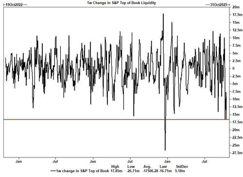 La liquidez del S&P Top of Book se desplomó tras los titulares sobre EE. UU. y China. El cambio en una semana registró una disminución de -16,71 millones de dólares, la segunda mayor caída en tres años.