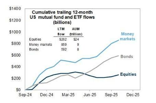 Los flujos hacia fondos mutuos y productos de inversión relacionados mostraron una demanda firme de acciones, pero entradas más lentas hacia bonos.