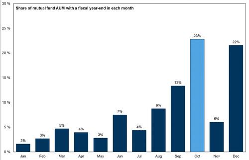 Octubre trae la mayor proporción de cierres de ejercicios fiscales de fondos mutuos de cualquier mes, lo que eliminará un obstáculo clave para las acciones en noviembre.