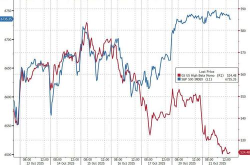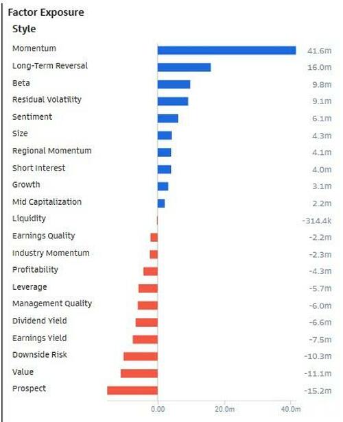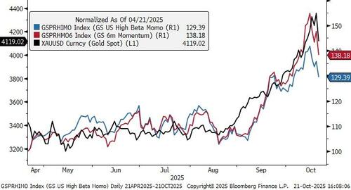 La mesa de operaciones de Goldman señaló que la acción del precio de hoy (y sus flujos) se sintieron descontrolados, con gente vendiendo los ganadores del año hasta la fecha y cubriendo posiciones cortas para ampliar las posiciones largas. La cesta de “beta” de Goldman cayó un 4% hoy.