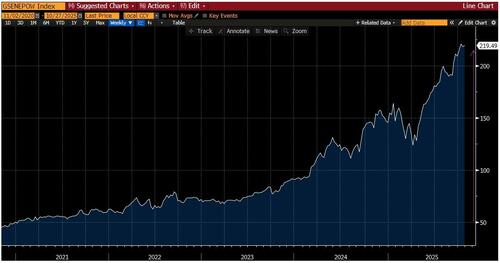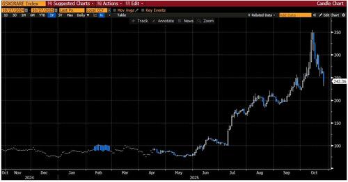 Hablando de alta velocidad, este es un gráfico salvaje: una canasta personalizada de (nueve) acciones globales con apalancamiento en el tema de las tierras raras.