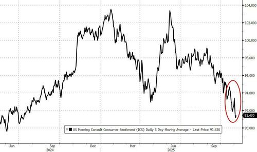 Lo que inicialmente se descartó como ruido político ahora parece tener mayor significado económico (véase el índice de confianza del consumidor MCONSENT, que alcanzó nuevos mínimos).