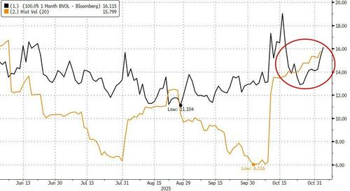 Es probable que el control de la volatilidad también esté actuando como vendedor marginal a medida que la volatilidad realizada e implícita aumenta… aún no es disruptivo, pero la asimetría se está acumulando.