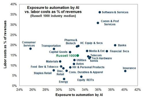 Exposición de la industria a las mejoras de productividad relacionadas con la IA.