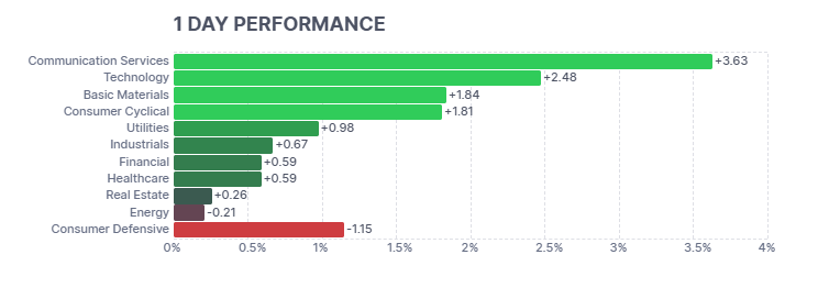 Esto impulsó compras importantes en las principales bolsas estadounidenses, lideradas por un enorme salto en el Nasdaq. El Dow fue el rezagado del día, pero aun así tuvo un buen desempeño.