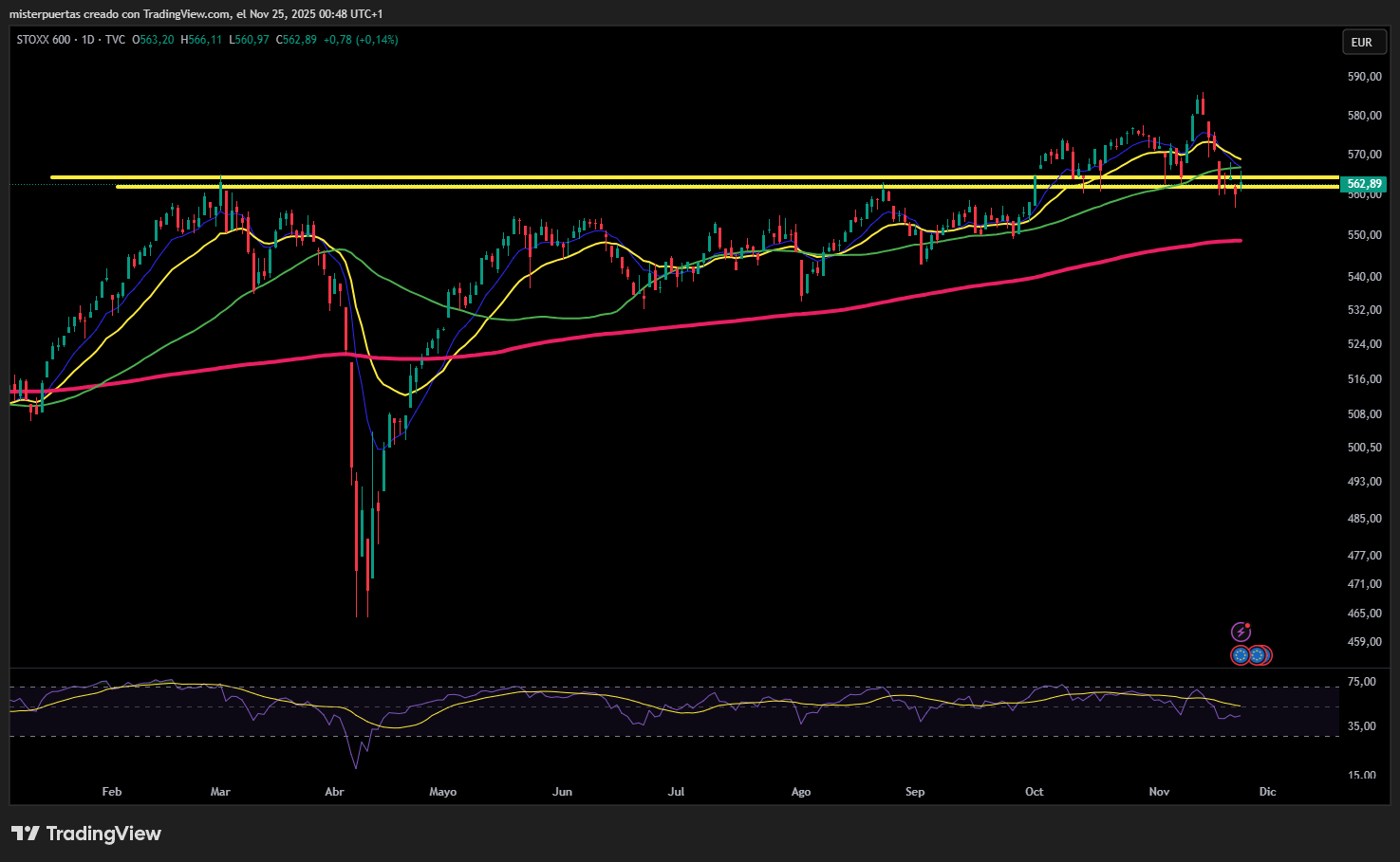 El índice paneuropeo STOXX 600 subió un 0,31% hasta los 563,83 puntos al cierre, después de que el viernes registrara su mayor caída semanal desde finales de julio.