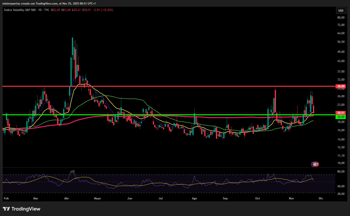 Tras el repunte del mercado y la disminución de los riesgos extremos de la política monetaria, el VIX también está retrocediendo, de nuevo hacia 20 desde un breve repunte cerca de 30 la semana pasada.