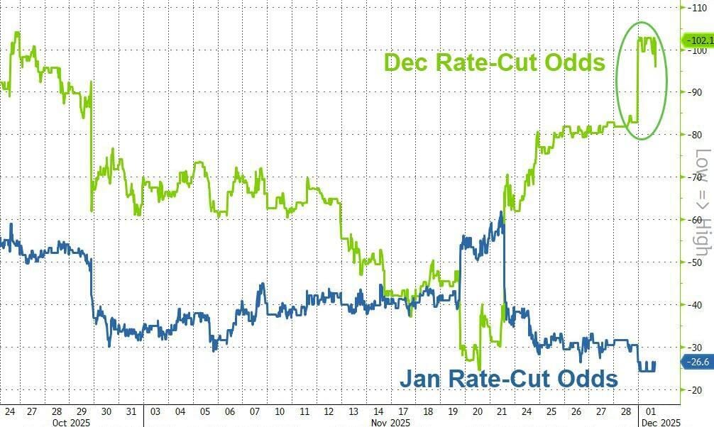 El mercado ahora estima una probabilidad del 100% de un recorte en diciembre.
