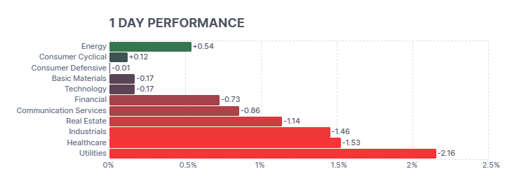 Las empresas de pequeña capitalización fueron las que más perdieron en la jornada, mientras que el Nasdaq y el S&P 500 se debilitaron solo ligeramente. Pese a la debilidad generalizada, no se perdieron niveles importantes.