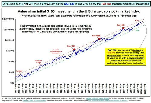 ¿Es una burbuja? No, el S&P 500 sigue un 37 % por debajo de su máximo potencial de tendencia de dos siglos.