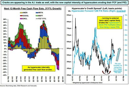 El gasto de capital de los hiperescaladores está erosionando el flujo de caja, y el recurso a la deuda ha presionado el precio/beneficio